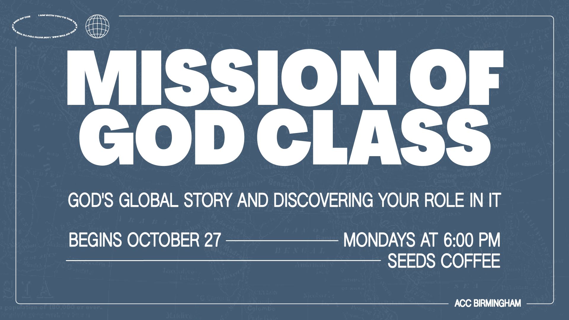 Mission of God is a 4-week formation course about God’s heart for the nations and the way He invites us to be involved. This is a great first step and open to anyone in our church family.